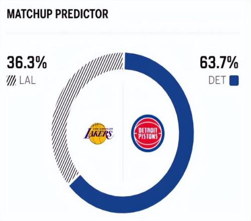 赛前,美媒ESPN对本场比赛进行了胜率预测,湖人队胜率仅有36.3% ,意外处于劣势位置,活塞胜率则高达63.7% 。