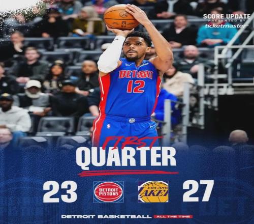 首节战罢,湖人27-23领先活塞4分。东契奇膝盖不适,第一节打完返回更衣室接受检查,詹姆斯手指也被戳了一下。两人问题都不大,第二节重新登场。斯玛特缺阵让湖人的外线防守被针对,活塞单节三分8中5,第二节反超湖人!