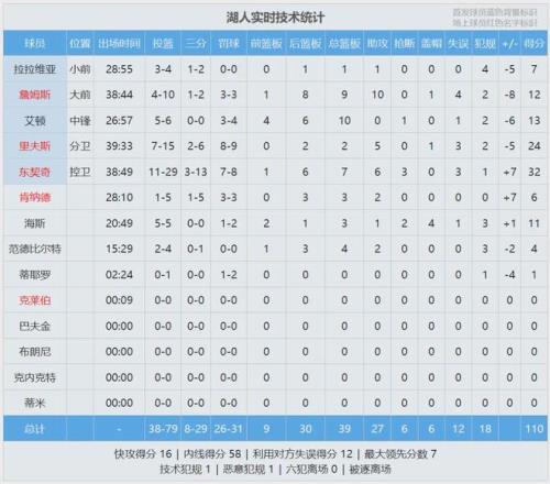 詹金斯2罚2中,最后9秒活塞领先3分。湖人边线球差点失误,东契奇把球捡回来,但是湖人战术被破坏。杜伦紧贴东契奇,后者超远三分三不沾。全场结束,活塞113-110终结了湖人9连胜!詹金斯30分4板8助、杜伦20分11板。