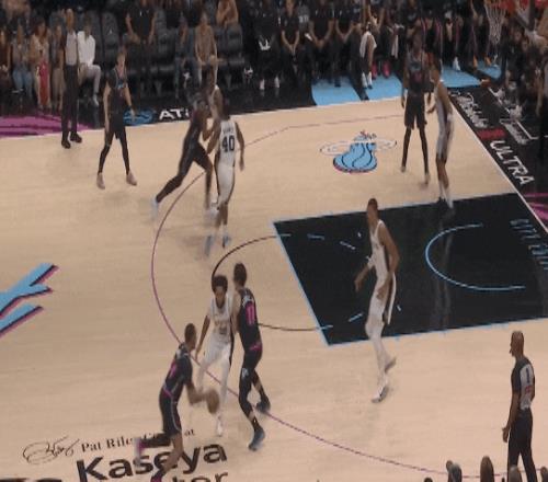 希罗没法给阿德巴约了,只好找扣篮位的维金斯,但文班亚马飞身杀回,维金斯高抛,被文班盖掉。