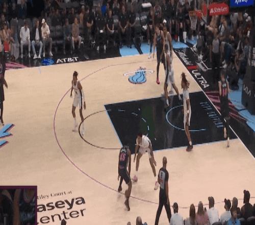 招牌的马刺堵中放边弱侧补盖,协作把小米切尔送到文班面前。