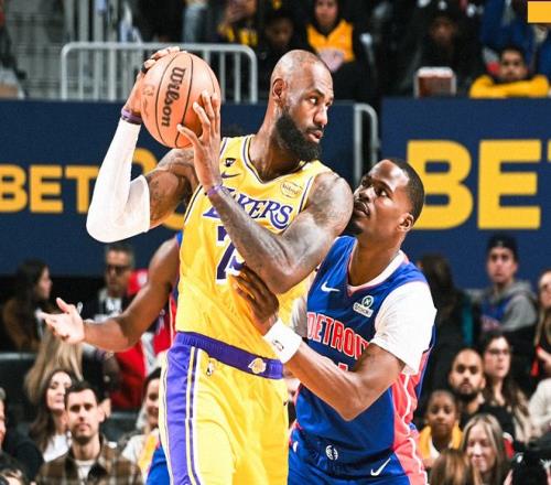 活塞依靠杜伦和奥萨尔肆虐篮下,哈里斯飚三分,老詹则轮流喂饼东契奇和艾顿,东契奇造三分犯规后,继续强投三分,后半段肯纳德也续上三分球,不过活塞屡屡打出反击,詹金斯手感火热,第一节湖人27-23领先活塞。进入第二节,里夫斯串联起球队进攻,不过勒韦尔联合奥萨尔冲击篮下,很快带队追平。中段艾顿追防勒韦尔,有一个明显的多余附加动作,被吹一级恶意犯规,此后活塞发力:许尔特续上三分,杜伦造杀伤后,突破上篮再中。里夫斯止血后,活塞詹金斯突然下三分雨,分差到两位数。