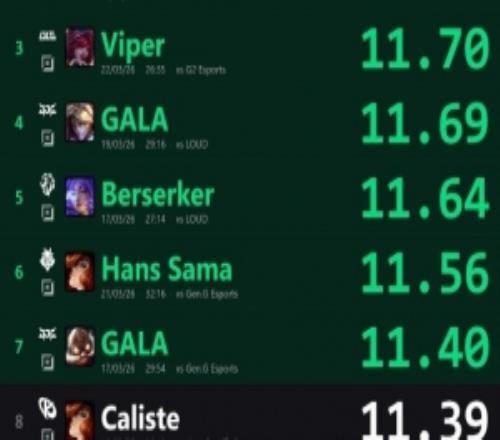 电竞体育3月24报道 外媒Monsieur Yordle统计了25和26两年先锋赛单场分均补刀TOP10排名的排行,具体如下: