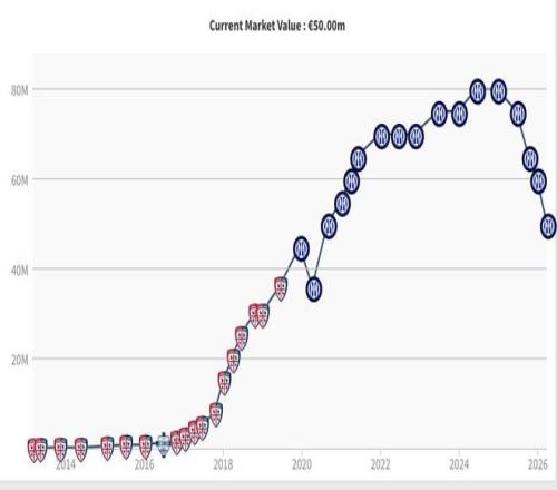 根据统计,此次身价下跌让巴雷拉遭遇了德转身价的四连跌,他的身价也从2024年巅峰时期的8000万欧元一路下跌至如今的5000万欧元。