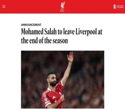 03月25报道 萨拉赫在社媒发布视频,宣布自己将在赛季末离开利物浦,利物浦官方随后也发布公告证实此消息。